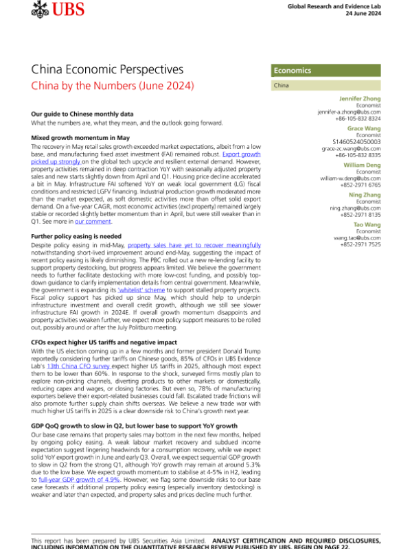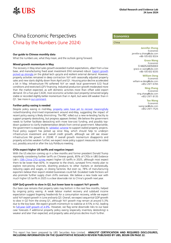 【UBS Securities Asia Limited】【20240624】UBS Economics-China Economic Perspectives China by the Numbers (June 2024)-25页