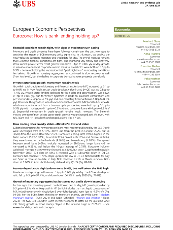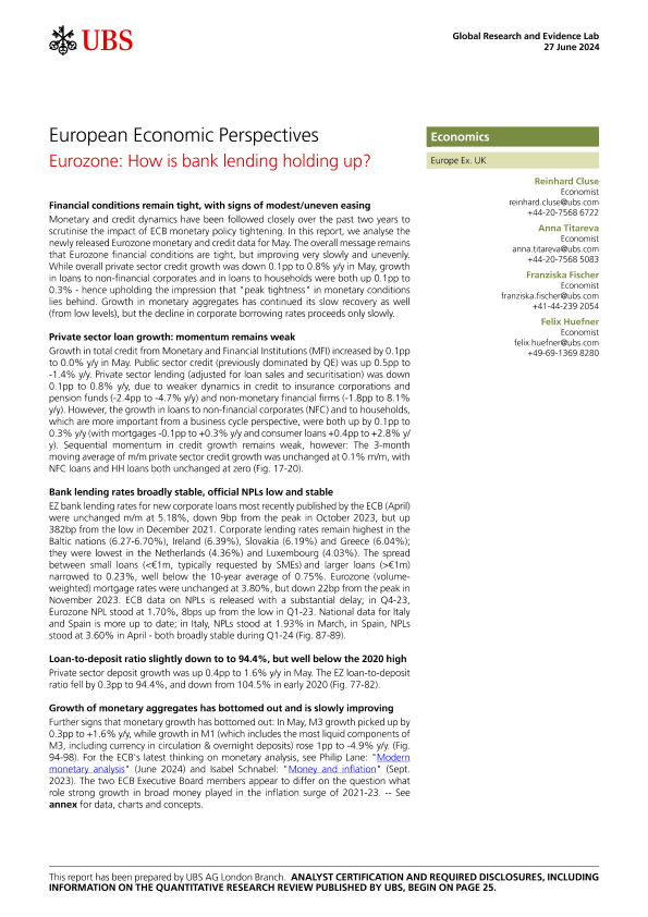 【UBS AG London Branch】【20240627】European Economic Perspectives _Eurozone How is bank lending holding up?-28页