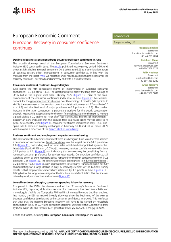 【UBS】【20240627】European Economic Comment _Eurozone Recovery in consumer confidence-14页