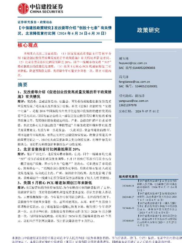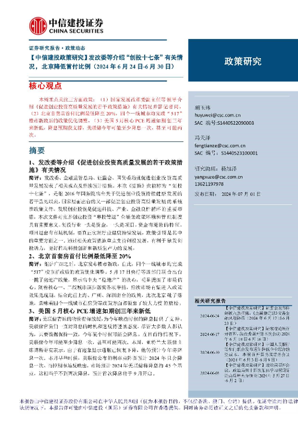 【中信建投证券】【20240701】发改委等介绍“创投十七条”有关情况,北京降低首付比例-16页