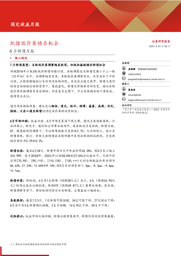 【西部证券】【20240703】6月转债月报:把握低价券错杀机会-18页