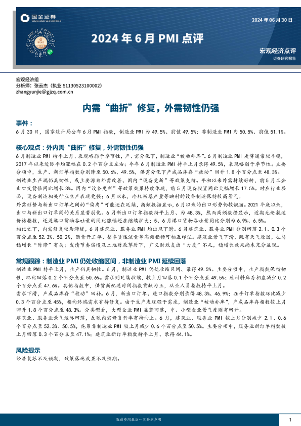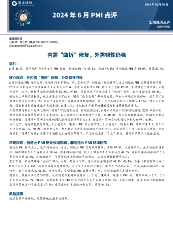 【国金证券】【20240630】2024年6月PMI点评:内需“曲折”修复,外需韧性仍强-12页