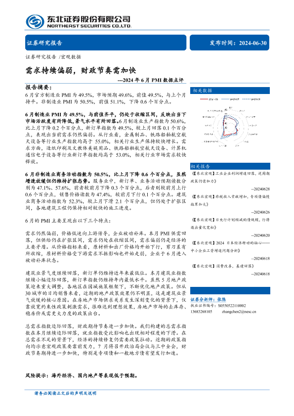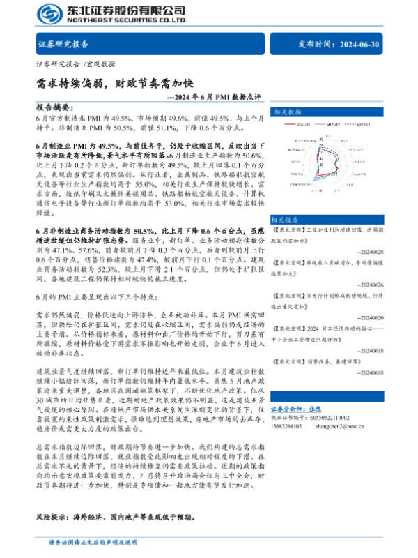【东北证券】【20240630】2024年6月PMI数据点评:需求持续偏弱,财政节奏需加快-10页