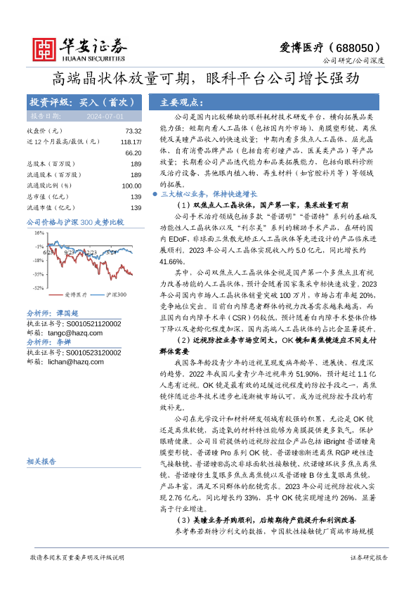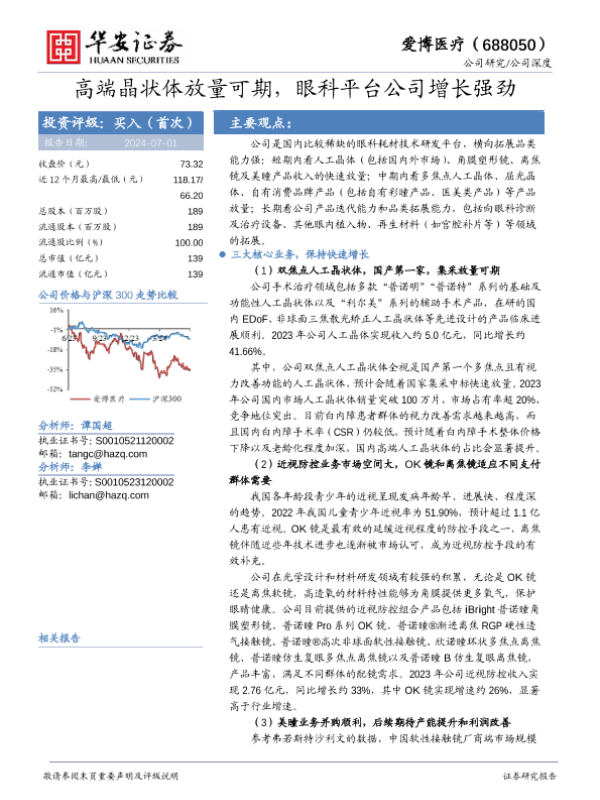 【华安证券】【20240701】爱博医疗(688050)高端晶状体放量可期,眼科平台公司增长强劲-36页