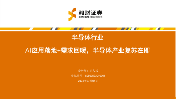 【湘财证券】【20240704】半导体行业:AI应用落地+需求回暖,半导体产业复苏在即-43页