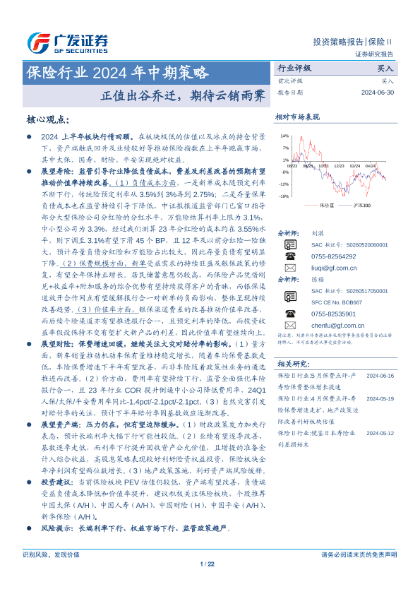 【广发证券】【20240630】保险行业2024年中期策略:正值出谷乔迁,期待云销雨霁-22页