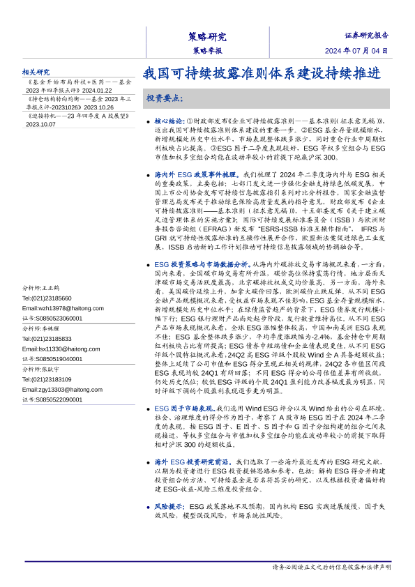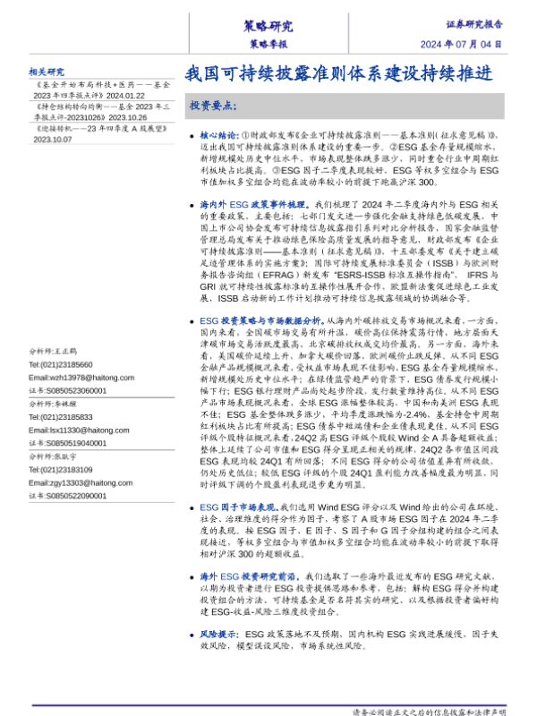 【海通证券】【20240704】策略季报:我国可持续披露准则体系建设持续推进-23页