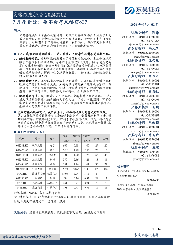 【东吴证券】【20240702】策略深度报告:7月度金股,会不会有风格变化?-14页