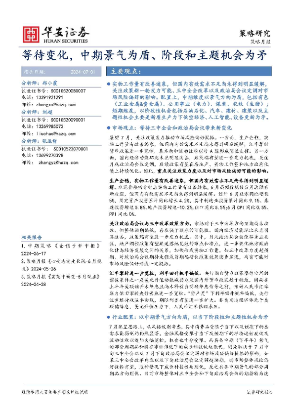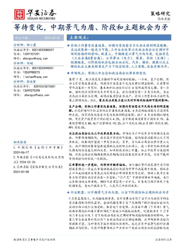【华安证券】【20240701】策略月报:等待变化,中期景气为盾、阶段和主题机会为矛-21页