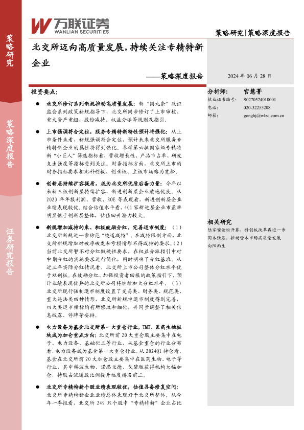 【万联证券】【20240628】策略深度报告:北交所迈向高质量发展,持续关注专精特新企业-20页