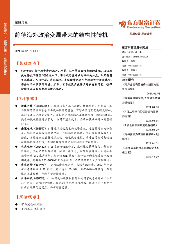 【东方财富证券】【20240703】策略月报:静待海外政治变局带来的结构性转机-13页