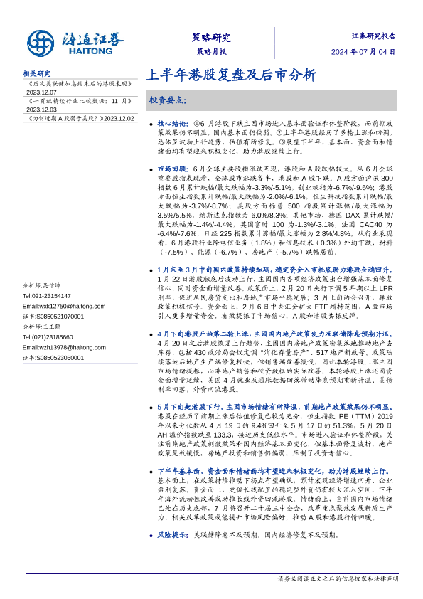 【海通证券】【20240704】上半年港股复盘及后市分析-8页