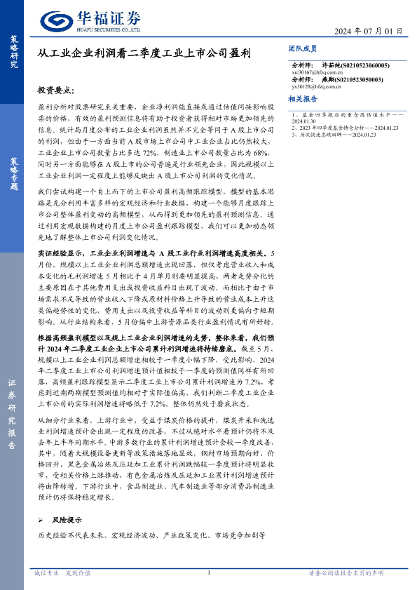 【华福证券】【20240701】策略专题:从工业企业利润看二季度工业上市公司盈利-12页