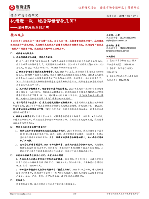 【浙商证券】【20240627】城投集思录系列之三:化债近一载,城投存量变化几何?-10页