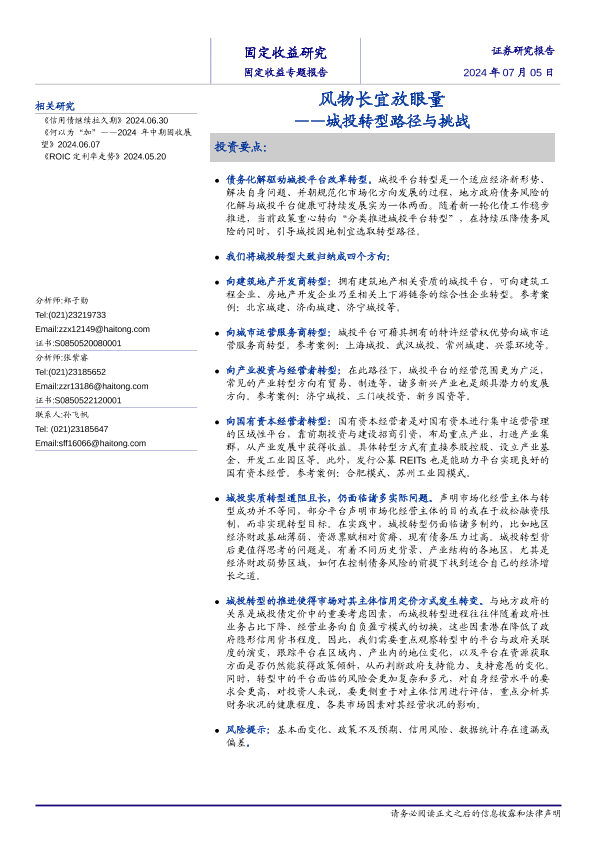【海通证券】【20240705】风物长宜放眼量——城投转型路径与挑战-14页