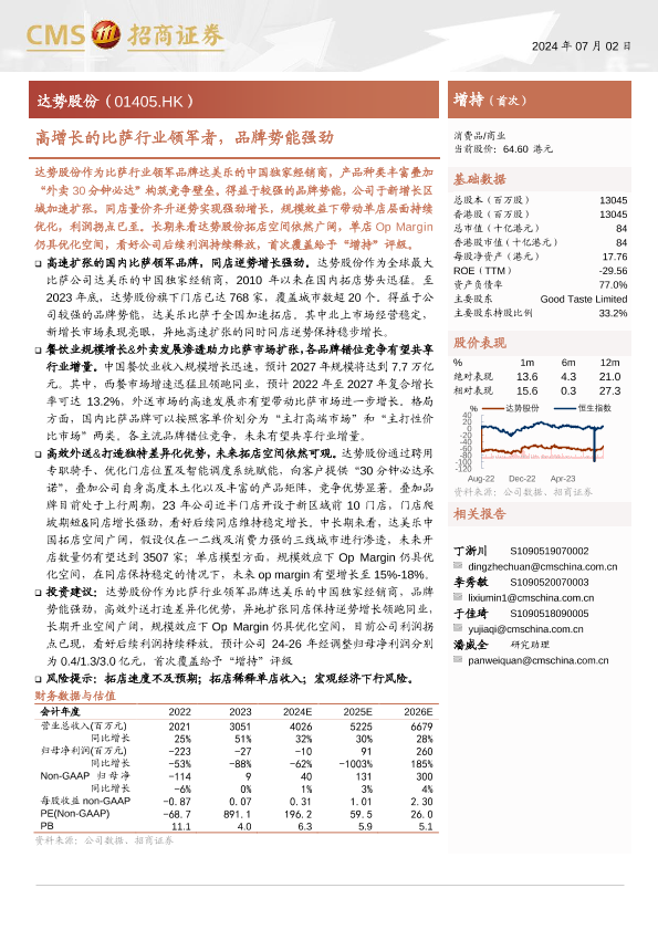 【海通证券】【20240702】达势股份(01405.HK)高增长的比萨行业领军者,品牌势能强劲-31页