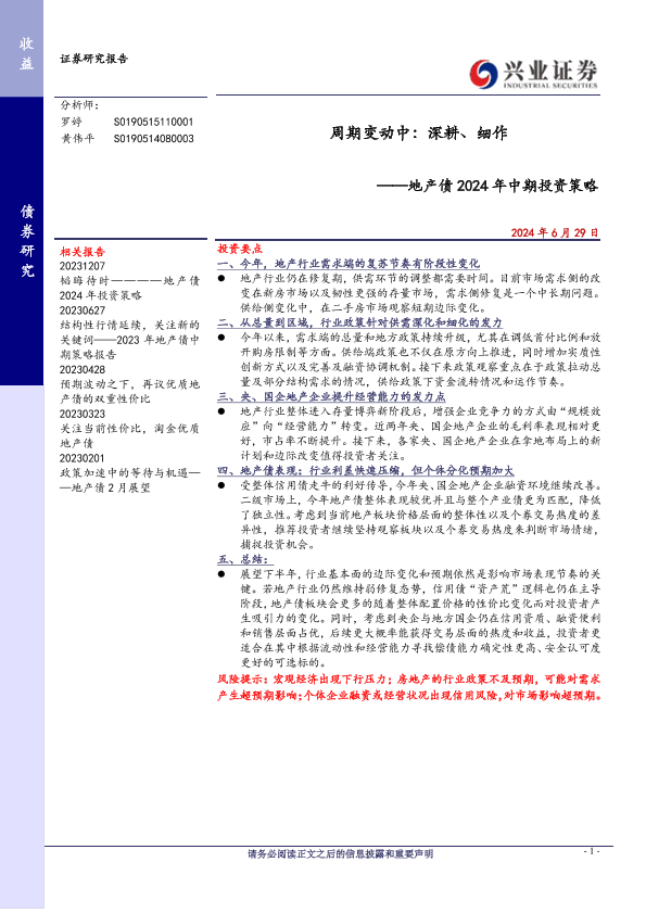 【兴业证券】【20240629】周期变动中:深耕、细作——地产债 2024年中期投资策略-22页