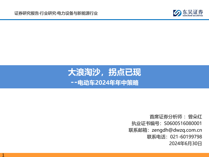 【东吴证券】【20240630】电动车行业2024年年中策略:大浪淘沙,拐点已现-92页