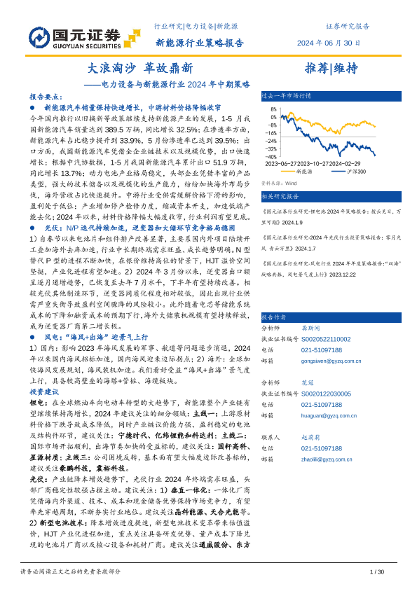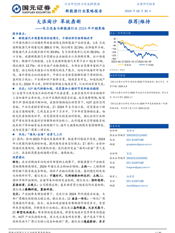 【国元证券】【20240630】电力设备与新能源行业2024年中期策略:大浪淘沙,革故鼎新-30页