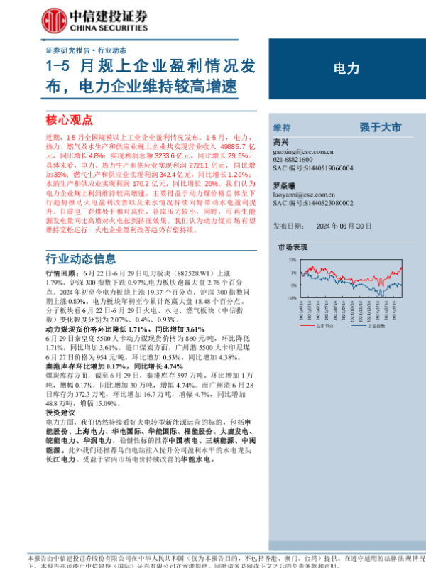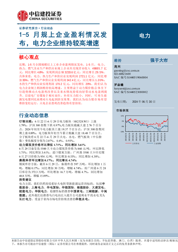 【中信建投证券】【20240630】电力行业:1-5月规上企业盈利情况发布,电力企业维持较高增速-16页