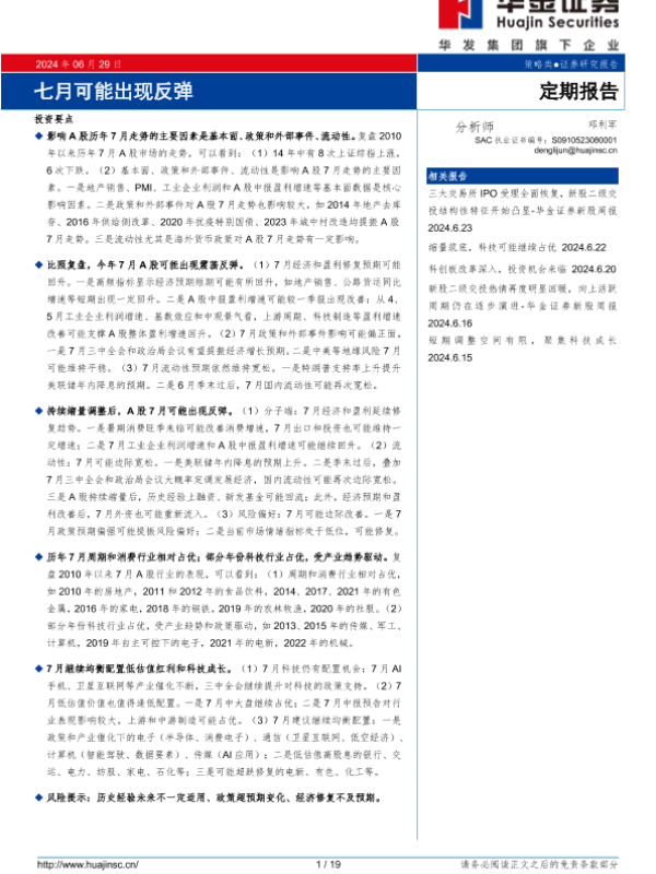 【华金证券】【20240629】定期报告:七月可能出现反弹-19页