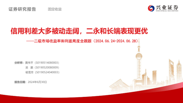 【兴业证券】【20240630】二级市场收益率和利差周度全跟踪:信用利差大多被动走阔,二永和长端表现更优-49页