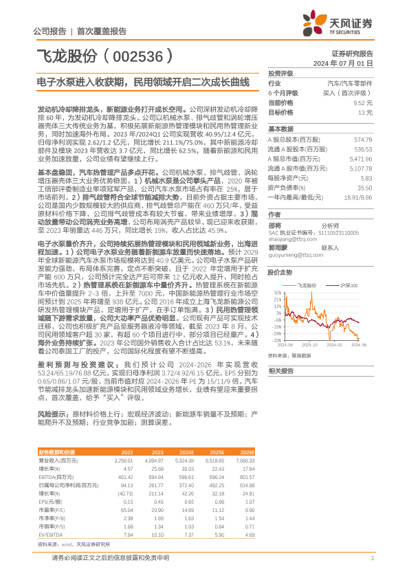 【天风证券】【20240701】飞龙股份(002536)电子水泵进入收获期,民用领域开启二次成长曲线-29页