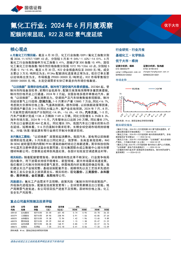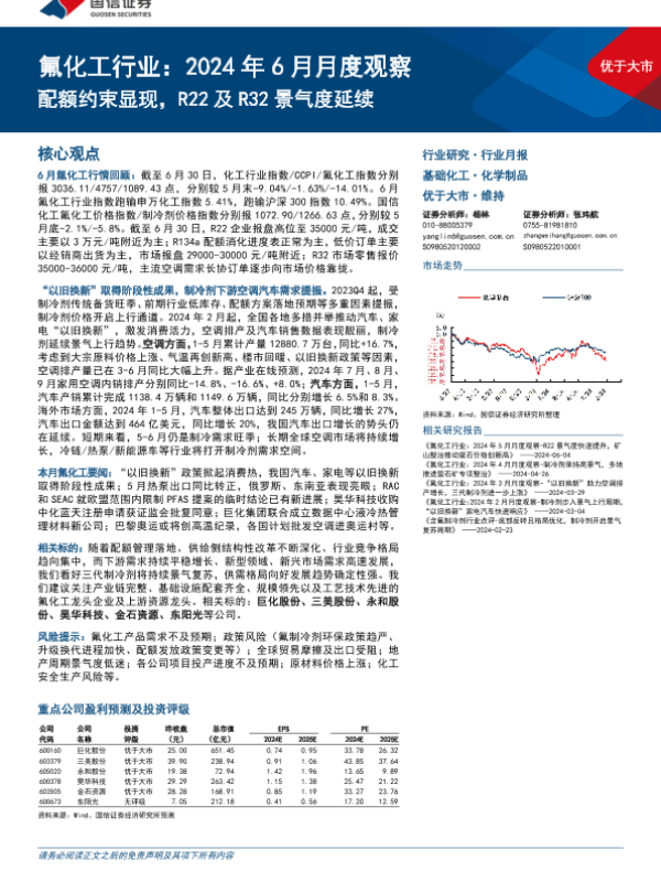 【国信证券】【20240702】氟化工行业:2024年6月月度观察,配额约束显现,R22及R32景气度延续-37页