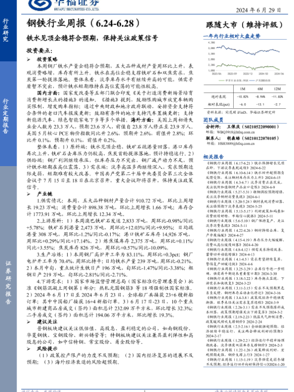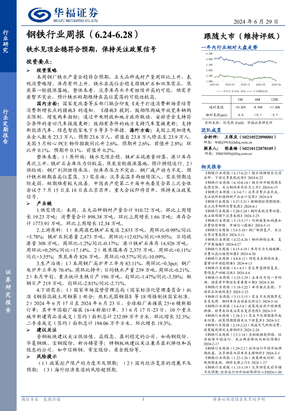 【华福证券】【20240629】钢铁行业:铁水见顶企稳符合预期,保持关注政策信号-17页