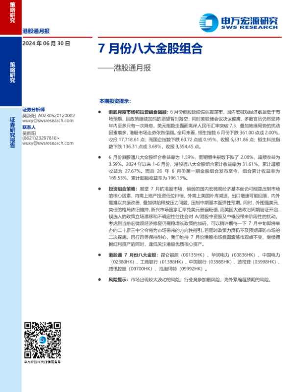 【申万宏源】【20240630】港股通月报:7月份八大金股组合-12页