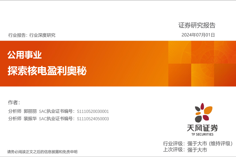 【天风证券】【20240701】公用事业行业报告:探索核电盈利奥秘-29页