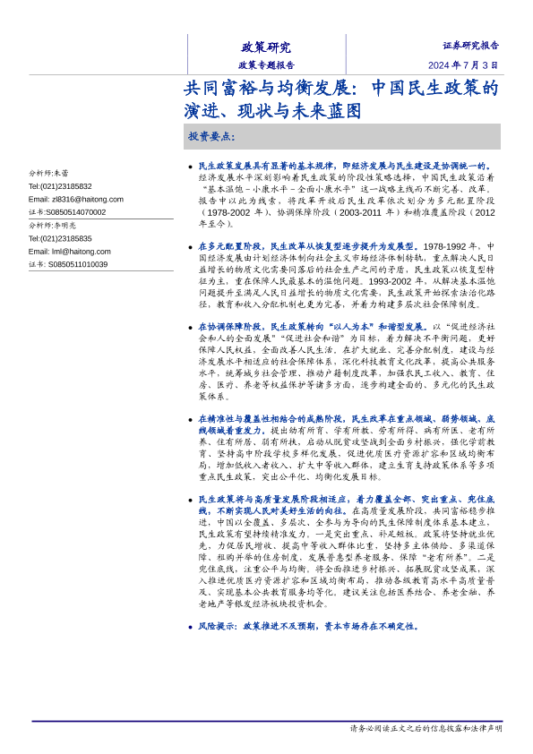 【海通证券】【20240703】共同富裕与均衡发展:中国民生政策的演进、现状与未来蓝图-14页