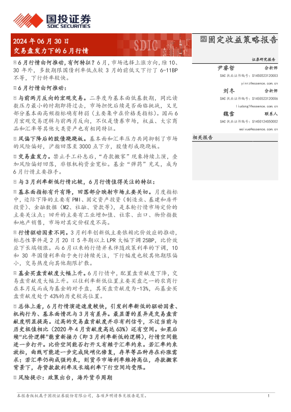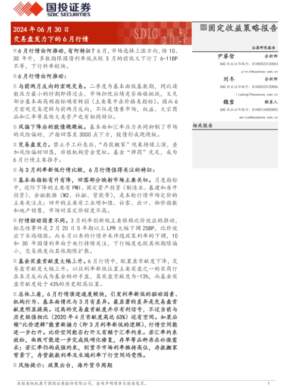 【国投证券】【20240630】固定收益策略报告:交易盘发力下的6月行情-11页