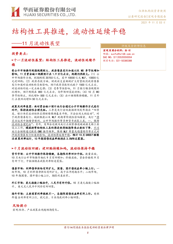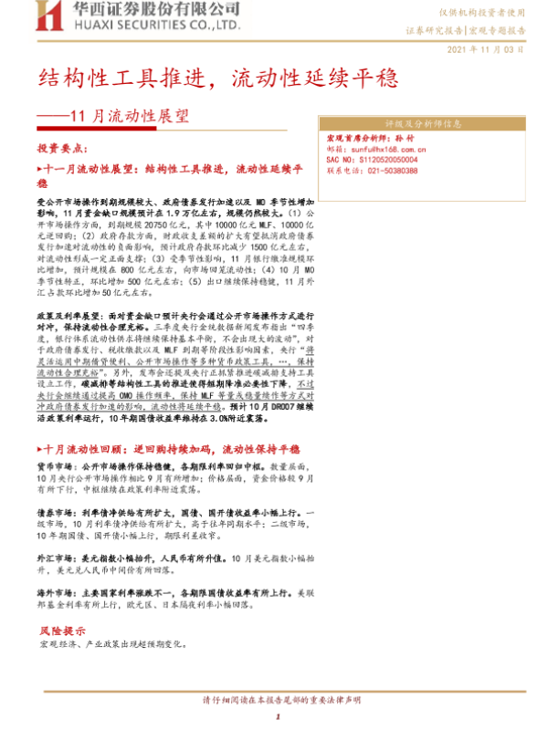 【华西证券】【20211103】11月流动性展望:结构性工具推进,流动性延续平稳-19页