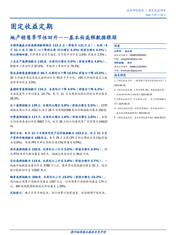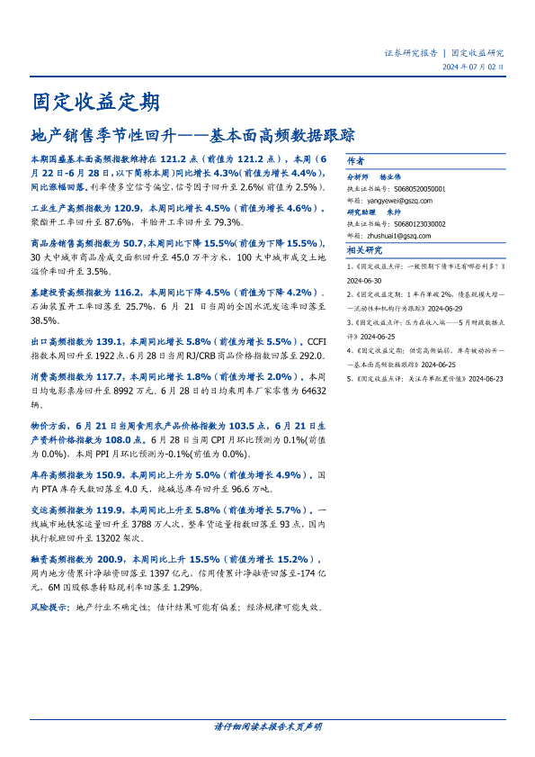 【国盛证券】【20240702】固定收益定期:基本面高频数据跟踪,地产销售季节性回升-21页