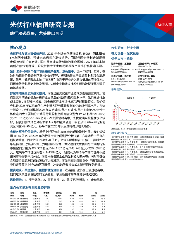 估值分析 光伏行业 双碳战略 清洁能源 龙头竞争