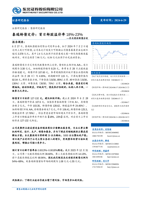 【东北证券】【20240629】固收转债分析:泰瑞转债定价,首日转股溢价率18%-23%-11页