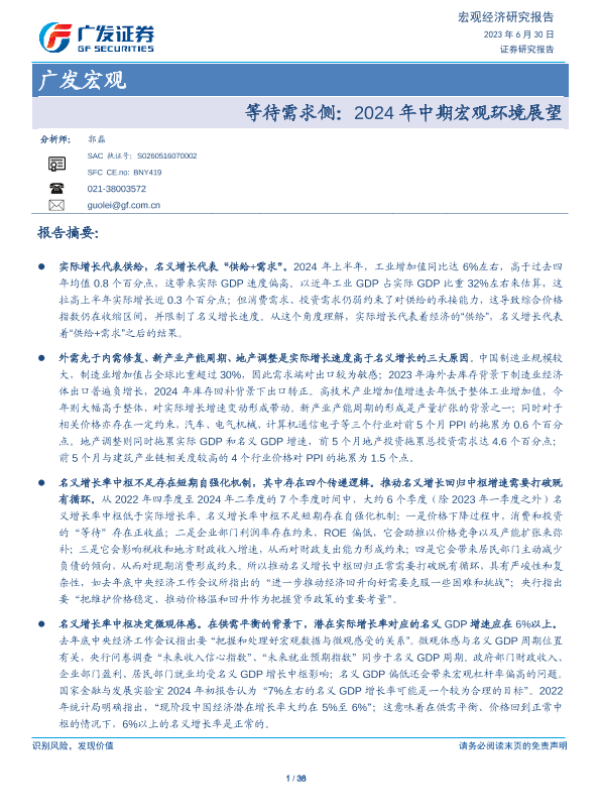 【广发证券】【20240630】等待需求侧:2024年中期宏观环境展望-38页