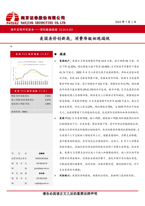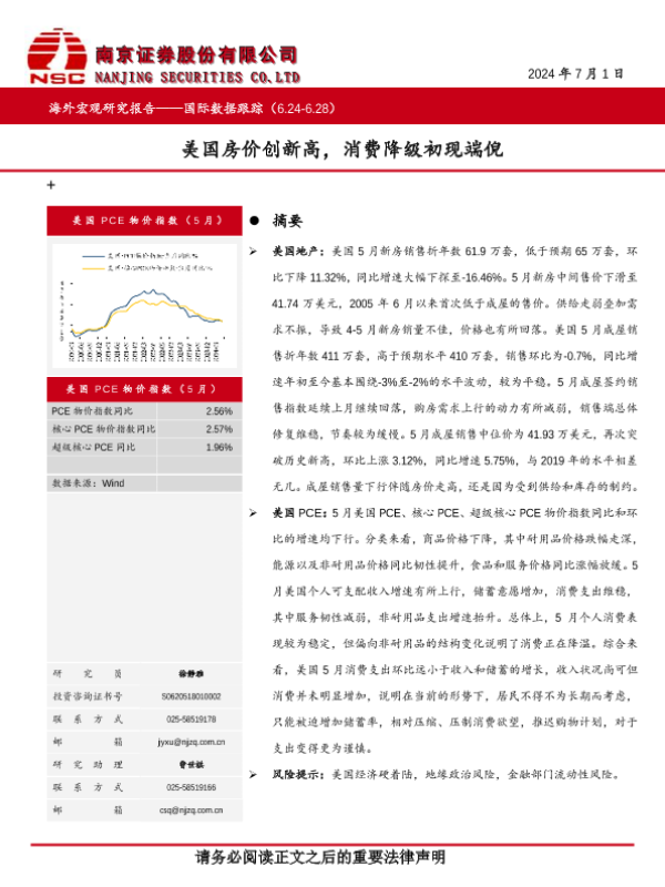 【南京证券】【20240701】国际数据跟踪:美国房价创新高,消费降级初现端倪-15页