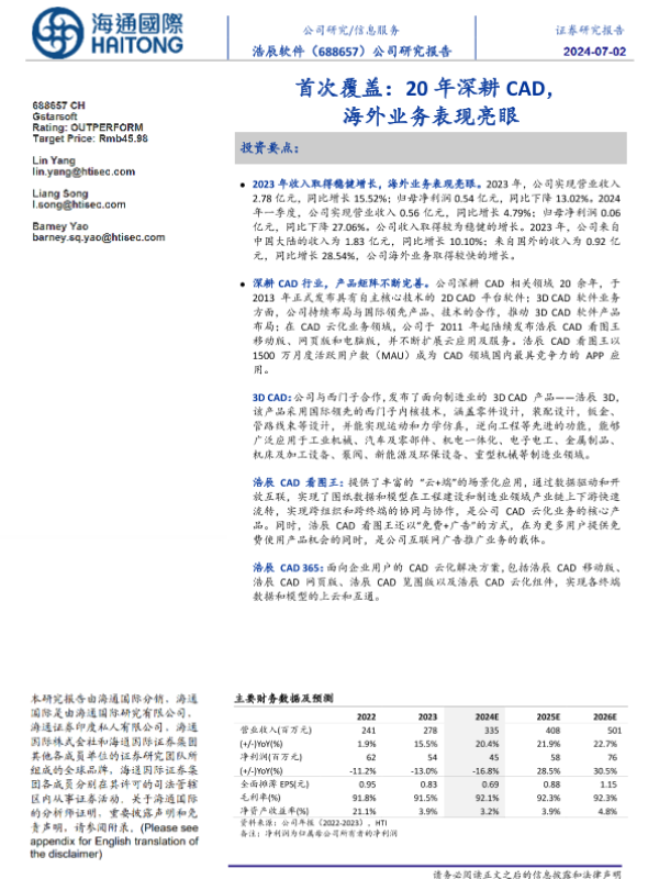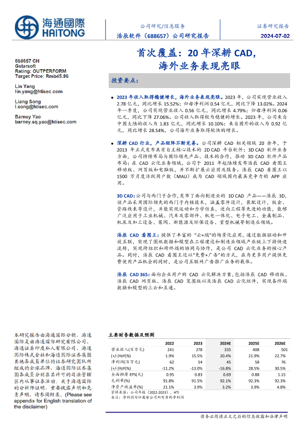【海通国际】【20240702】浩辰软件(688657)首次覆盖:20年深耕CAD,海外业务表现亮眼-13页