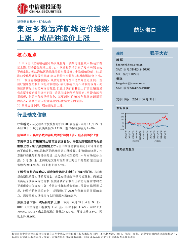 【中信建投证券】【20240630】航运港口行业:集运多数远洋航线运价继续上涨,成品油运价上涨-24页