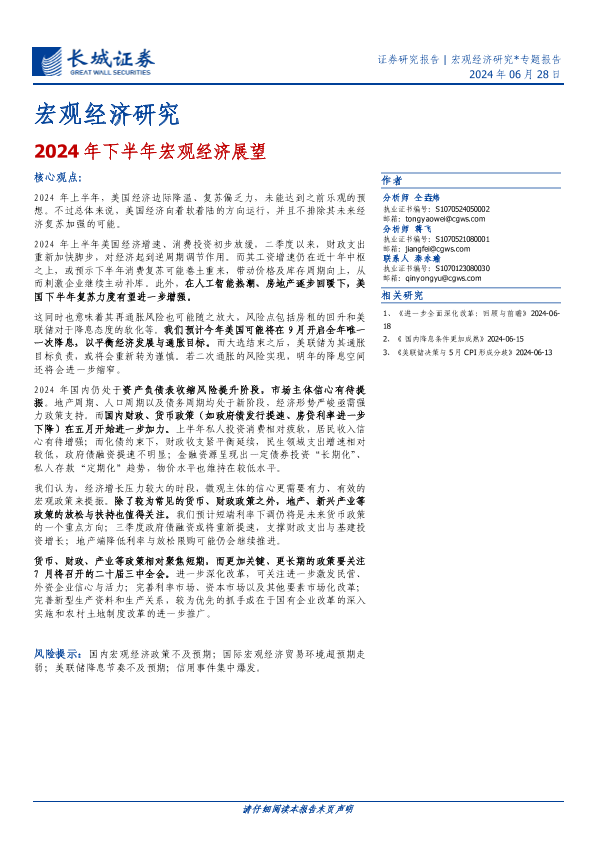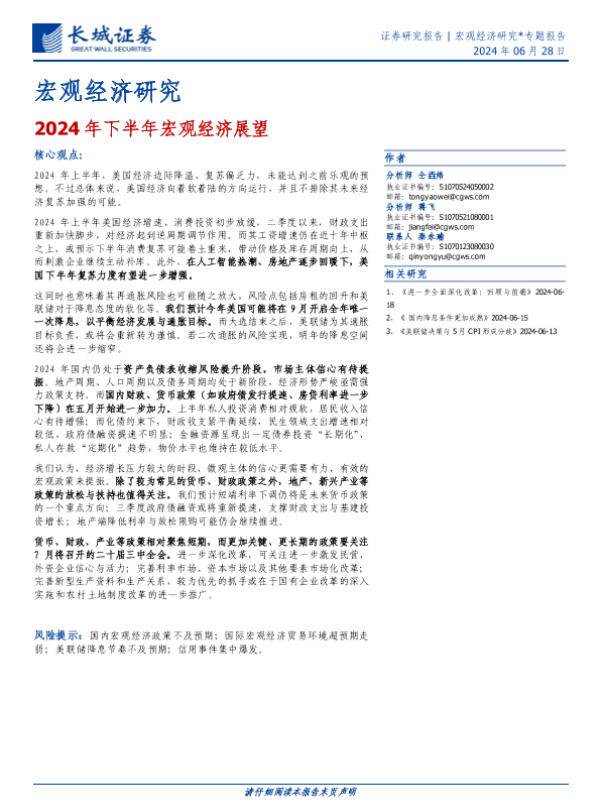 【长城证券】【20240628】2024年下半年宏观经济展望-22页