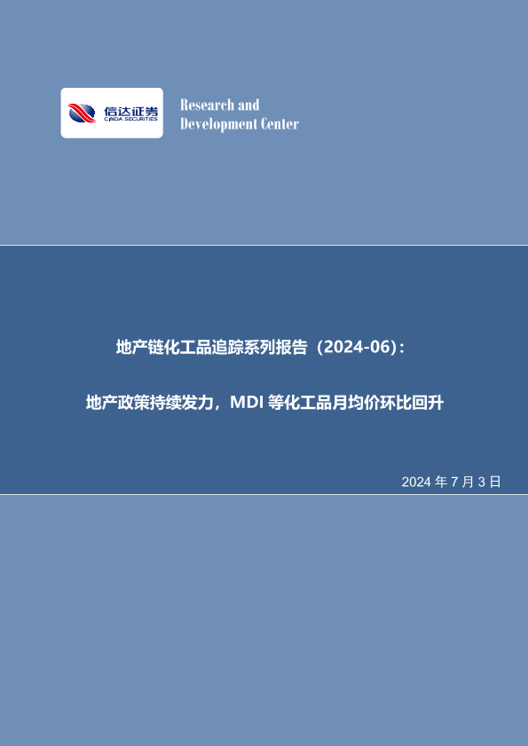 【信达证券】【20240703】化工行业地产链化工品追踪系列报告(2024-06):地产政策持续发力,MDI等化工品月均价环比回升-26页