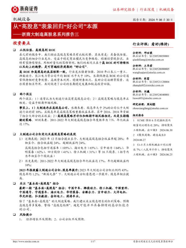 【浙商证券】【20240630】机械设备行业浙商大制造高股息系列报告三:从“高股息”表象回归“好公司”本源-17页