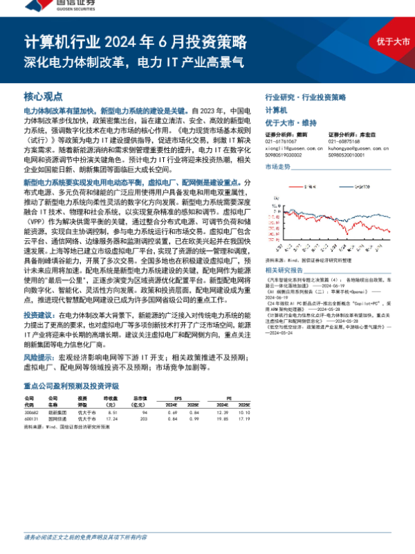 【国信证券】【20240701】计算机行业2024年6月投资策略:深化电力体制改革,电力IT产业高景气-14页