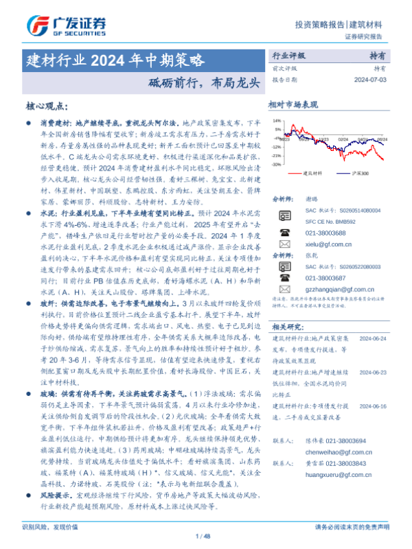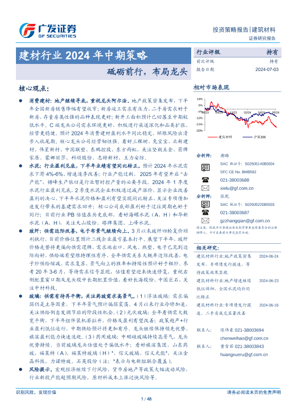 【广发证券】【20240703】建材行业2024年中期策略:砥砺前行,布局龙头-48页