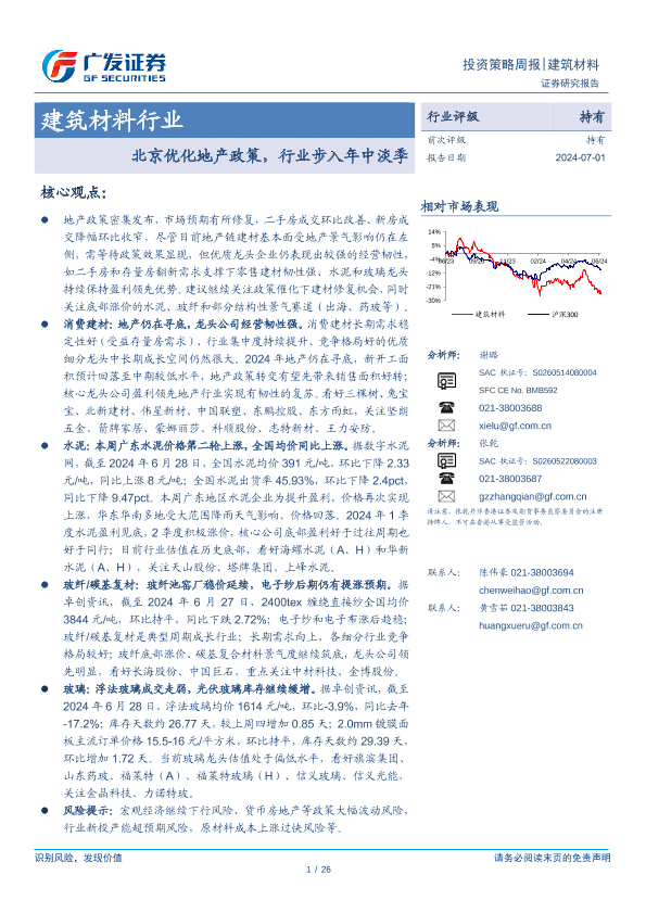 【广发证券】【20240701】建筑材料行业:北京优化地产政策,行业步入年中淡季-26页