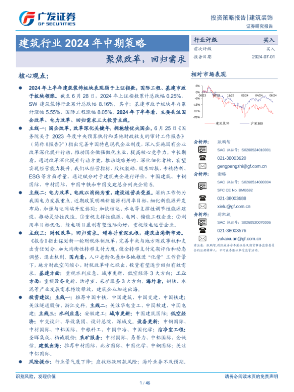 【广发证券】【20240701】建筑行业2024年中期策略:聚焦改革,回归需求-46页