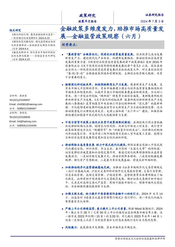 【海通证券】【20240703】金融监管政策观察(六月):金融政策多维度发力,助推市场高质量发展-19页