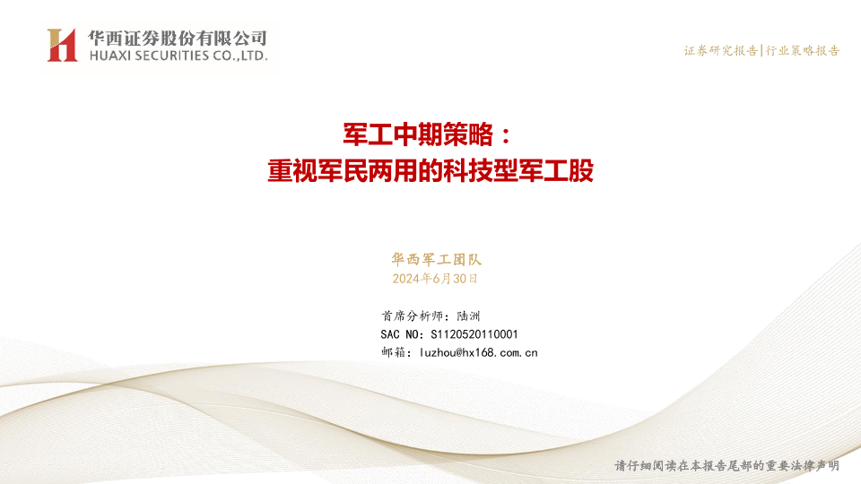 【华西证券】【20240630】军工行业中期策略:重视军民两用的科技型军工股-18页